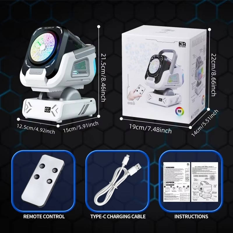 Mit einem einfachen Knopfdruck lassen sich über 30.000 Seifenblasen pro Minute freisetzen und sorgen so für eine lebendige und festliche Atmosphäre. Dank des cleveren Designs verstopft die Seifenblase nicht, sodass Sie den Seifenblasenspaß ungestört genießen können.