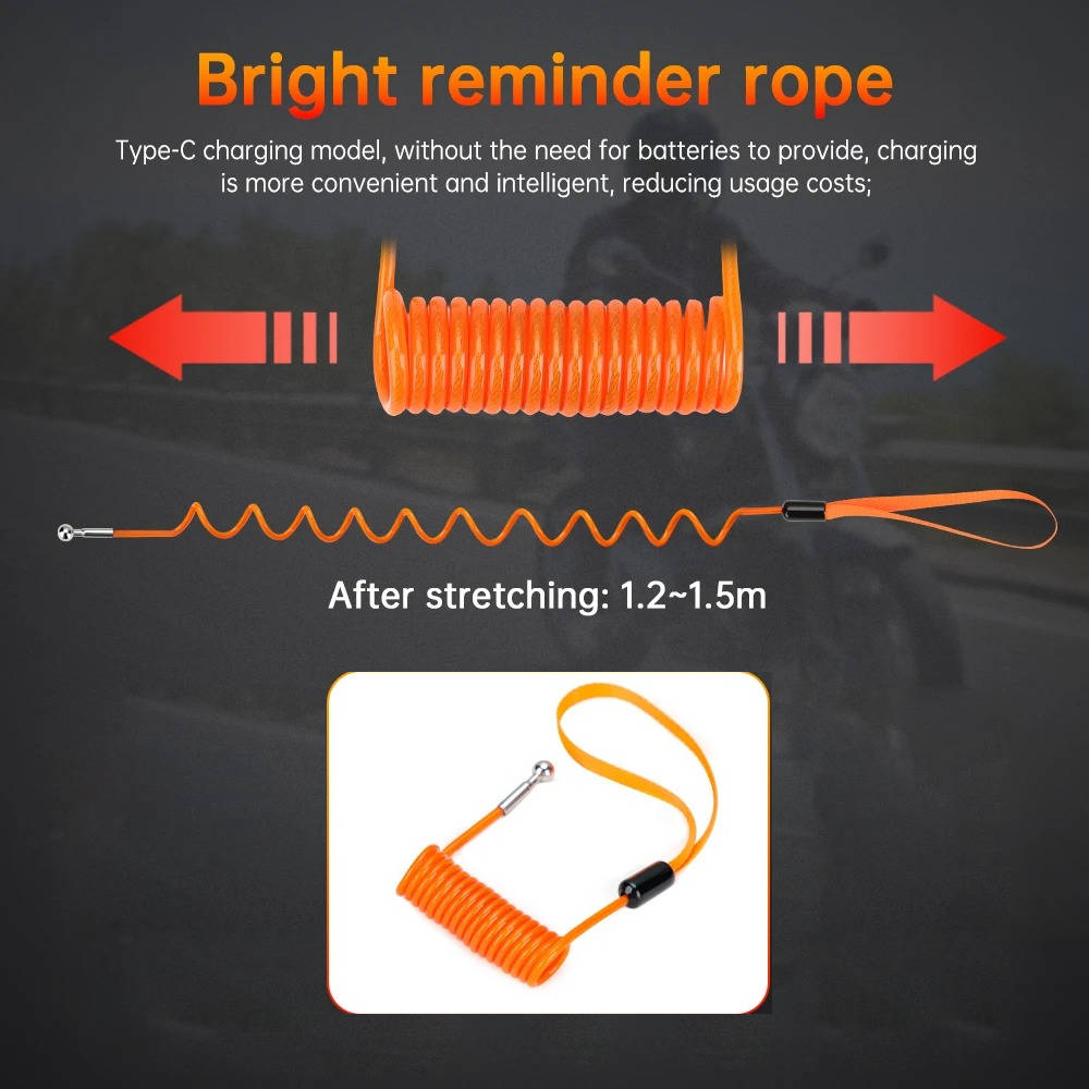 Dieses Motorrad-Scheibenbremsenschloss ist wasserdicht, sodass Sie auch bei Regen und durch Pfützen unbesorgt fahren können. Es ist mit den meisten Motorrädern mit Scheibenbremsen bis zu einer Breite von 60 mm (2,36 Zoll) kompatibel. Ein 1,5 m langes, gut sichtbares Erinnerungskabel verhindert, dass Sie versehentlich losfahren, ohne das Schloss zu entfernen.